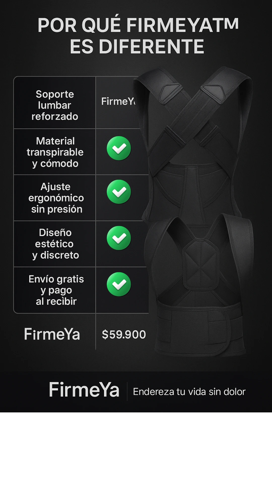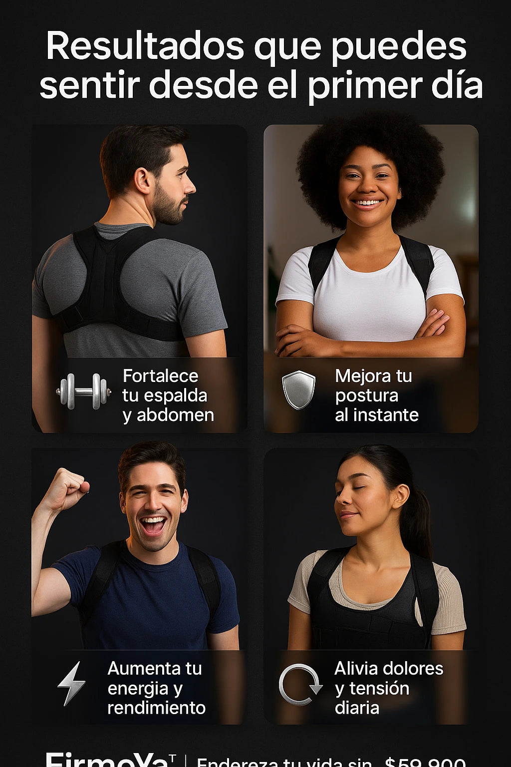 🧠 Sí la corrige. FirmeYa™ no es una “faja más”. Está diseñado para reeducar tu postura natural, fortaleciendo tu memoria muscular. Con el uso diario, tu cuerpo aprende a mantenerse erguido sin que tengas que pensar en ello.